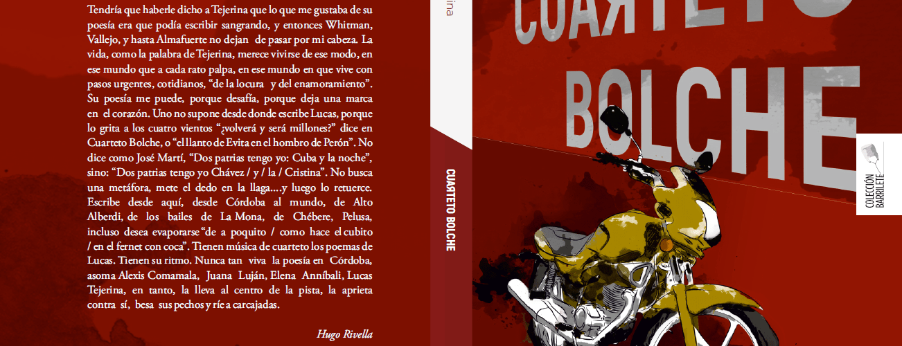 Y claro, Córdoba, esa patria singular, es un enclave en su poesía. Aparece distinguida, pues, voces inconfundibles la manifiestan: los bailes del Sargento, el fernet con Coca y Chébere y el Rey Pelusa. Lo popular es clave recurrente también: Perón, Cristina, Chávez. Esta localía permite signar en Cuarteto Bolche una rúbrica en su lenguaje, teñido de cordobés, de su clima, sus texturas y sus formas.