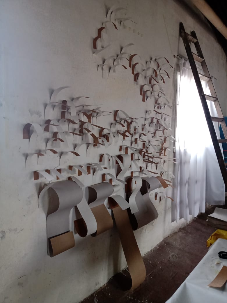 G.A: “Horror Vacui” surge como muchas otras obras de un ejercicio de búsqueda, a mis instalaciones generalmente las ayudo a salir a la luz, yo simplemente soy un medio. En este caso particular fue en un contexto bastante complicado en todo sentido, surgió durante la pandemia, y creo que fue una bisagra para continuar con otras cuestiones formales que me estaban dando vueltas por la cabeza.