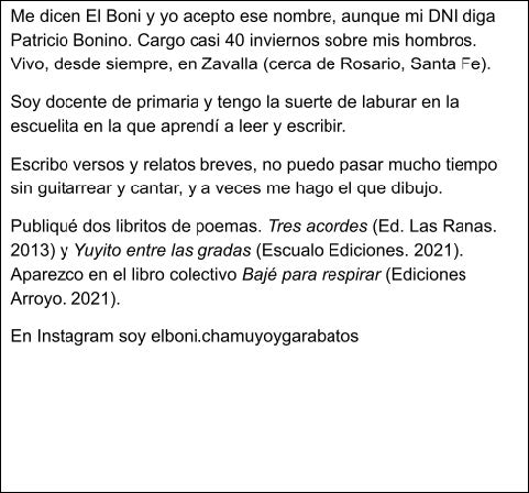 Mi mariposa Mariposas blancas sobre senderos grises huyen como la certidumbre Donde hubo vaquillonas ahora hay taxis donde las algas lamían los cantos rodados ahora hay prismas y cubos impermeables Desde lejos los álamos parecen edificios y el horizonte es una reja ¿De qué cárcel laberíntica? Huye mi mariposa de la guarda ella obstinación yo deseo Huye y sobrevuela el zanjón de las ranas roza con su sombra el hambre de esos bichos que miran para arriba como quien espera el maná del azar o de un ministro Es una grieta en el asfalto el país de los anfibios de un lado el pampero del otro la sudestada y en el medio la mariposa en heroica huida hacia un abismo de flores de cardo tristemente imaginarias. Lo único que se mueve es lo que cae Sobre mi sombra caen las palomas como hojas de nogal después de las nueces Caen por veneno por balín o zarpazo y rompen sus picos contra el suelo Mi sombra camina entre sombritas tiesas esas siluetas que estremecen mientras la muerte se vislumbra con su abanico de cuchillas ¿Cuándo –nos preguntamos- caerán esas columnas de mármol? ¿Cuándo serán ellas y no las palomas las que se rompan contra el suelo? Cilindros imperiales desafiando al tiempo y al único terremoto posible en estos pagos No hay temblores los años vuelan no hay un murmullo siquiera A cada rato cae una paloma en la vereda o una piba en un zanjón o un viejo en el olvido y sin embargo hay turrones santurrones regalando ejemplares del nuevo testamento en la puerta de la escuela embanderada Seguimos sin temblores mientras el siglo se quema y la vaquita profana insiste en traficar con metales y falopa entre las columnas de mármol en la puerta de la escuela y en las veredas donde la muerte se abanica junto a la sangre de las palomas y mi sombra. Vo fijate Viste que perdimos la chance de romper esa pantalla disfrazada de espejo nos fuimos quedando sin ideas locas y con martillos de goma tapamos los bostezos mientras una vieja CPU caía al pasto y aplastaba al grillito de la arenga Perdimos el partido 6 a 1 porque en el final nos enredamos en torpezas cansancios y temores y nos metimos 5 goles en contra. Viste que el monstruo se sacó la careta de buen pastor y ahora muestra su cara lavada con lágrimas ajenas y sus dientes sedientos de sudor y aceite Se hartó de sonreír y de silbar un tema de Bob Dylan y optó por desenvainar su verga frente a las cámaras Ahora no podemos hacernos los boludos ni creer que está muriendo el dueño de la espada todo está a la vista y sin calzones ofreciéndose al viento de la historia Viste que nos quemaron las maquetas empolvadas y aprovechando nuestra pereza las moscas nos pusieron sus huevitos en la boca tenemos que morfarnos estas larvas antes que nos morfen y de paso reciclar cenizas y carboncitos para escribir nuestras letras en la blanca pared de los pastorcitos Viste que las ovejas desaprueban con su balido frenético y aprueban pastando en silencio . Vo fijate pero para nosotros ya es tiempo de encender el quilombo en el corral de los siglos Vo fijate pero nosotros pensamos que ya es hora de soltar al conejo Tiremos a la mierda esos papeles dorados mirá cómo las pibas los convierten otra vez en plantas florecidas . Es hora de mirarse de abrazarse y de preñarse porque si la muerte nos va a alcanzar en el orgasmo yo prefiero morir abotonado y no en este sótano haciéndome la paja. Lo uno y lo otro ¿Cómo puede haber un niño en un lugar tan terrible? Donde con una tenaza les arrancan las alas a las hormigas voladoras y los bigotes a los bagrecitos ¿Cómo puede haber una sonrisa a pesar de todo? Y sin embargo hay lo uno y lo otro pero nunca están juntos la sonrisa y el niño. Retaguardia (puma) No sé quién dijo pero alguien trajo la primicia con voz exageradamente alarmada Todos salimos corriendo yo dejé que los demás se adelantaran algunos llevaban escopetas otros pistolas un correntino llevaba un machete yo llevaba sólo este cosito para grabar con voz seguramente agitada las palabras que fuese encontrando las que se les cayeran a ellos y las del rastro contundente que iba dejando ella A la puma! A la puma! A darle caza a la puma! Iban los gringos emplomados y el criollaje filoso con sed con rabia con jadeos Yo iba atrás pensando en ella En qué tanto daño pudo haber causado En qué necesidad de culparla de todos nuestros males La iba imaginando plena de elegancia felina aún en la desesperación y en secreto deseaba que no cayera Adelante iban los gringos y el criollaje sintiéndose fusileros de primera línea en brava construcción de una patriada atrás murmurando iba yo como un poeta.